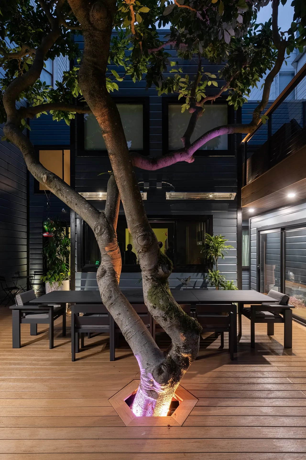 Design a durable and stylish outdoor space that works with the site’s tree root structure, not against it.